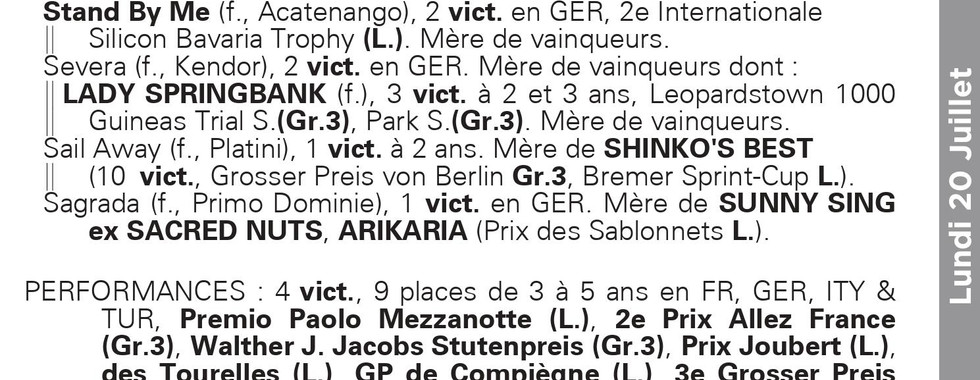 Suite aux ventes d'élevage de juillet, SUPERSTITION (lot 96) fut invendue et restera donc au Haras du Petit Tellier.